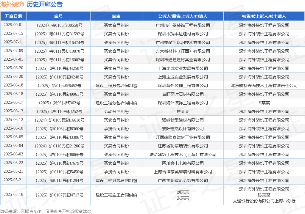 本站消息,根据天眼查APP显示,近日公布了一则深圳海外装饰工程有限公司作为原告/上诉人的开庭公告,详细内容如下: